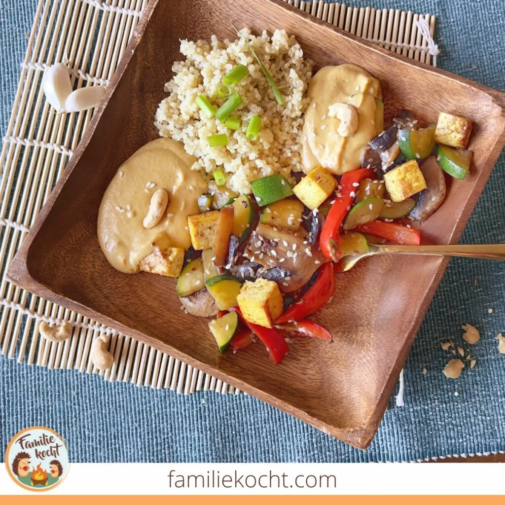 Asia-Gemüse mit Tofu und Cashewsauce
