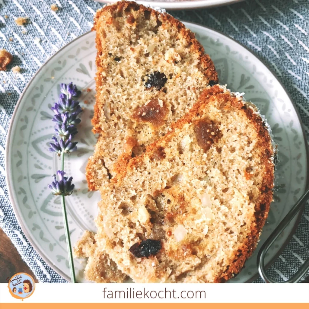 Durch das klein gewürfelte Trockenobst bekommt der Kuchen viel zusätzliche natürliche Süße. Ihr seid hier ganz flexibel, denn anstatt der Feigen sind auch Datteln oder getrocknete Aprikosen oder Pflaumen lecker.