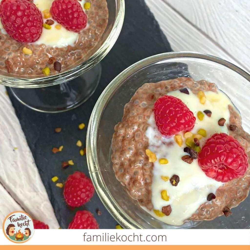 Chia Schoko Pudding ♥ cremig lecker und vegan mit Himbeeren!