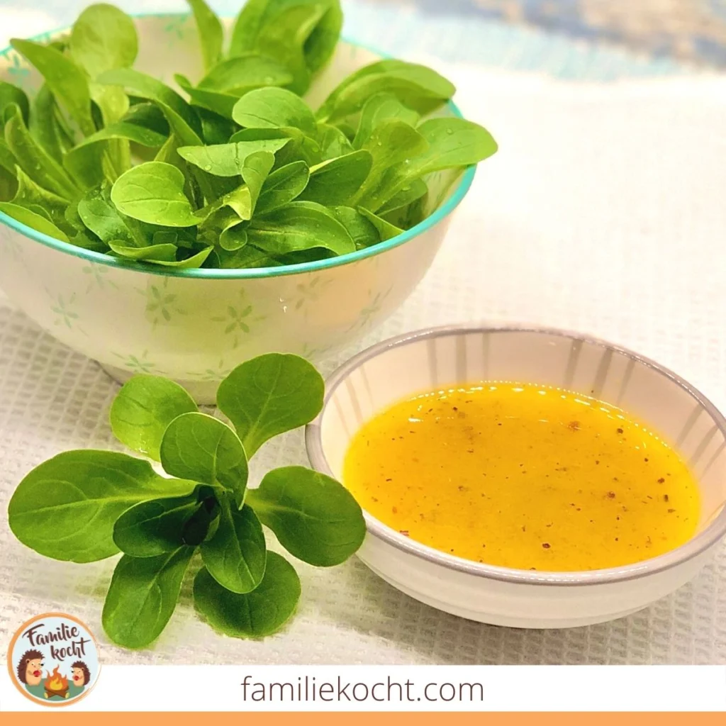 Wir finden, zum winterlichen Feldsalat passt dieses frische Dressing hervorragend. Mittelscharfer Senf, flüssiger Honig oder süßer Agavendicksaft kombiniert mit einem guten, kaltgepressten Öl machen dieses Salatdressing zur Geheimwaffe gegen langweilige Salate. Fertige Dressings haben dagegen keine Chance mehr.