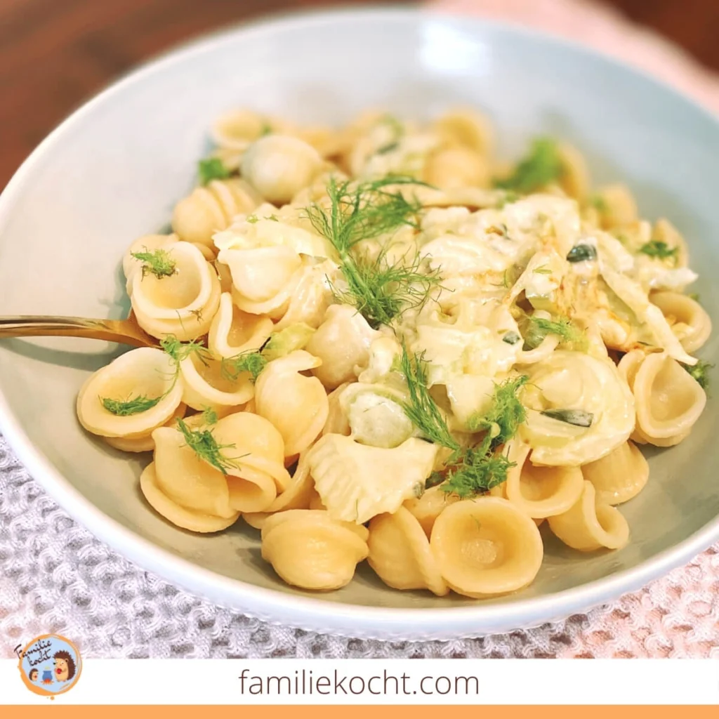 Zu diesem Rezept kamen wir, weil wir eine schnelle Mittagspausen Pasta mit einer hellen und cremigen Sauce zubereiten wollten. Der Fenchel lag nahe, denn er ist schnell vorbereitet und braucht keine lange Garzeit.