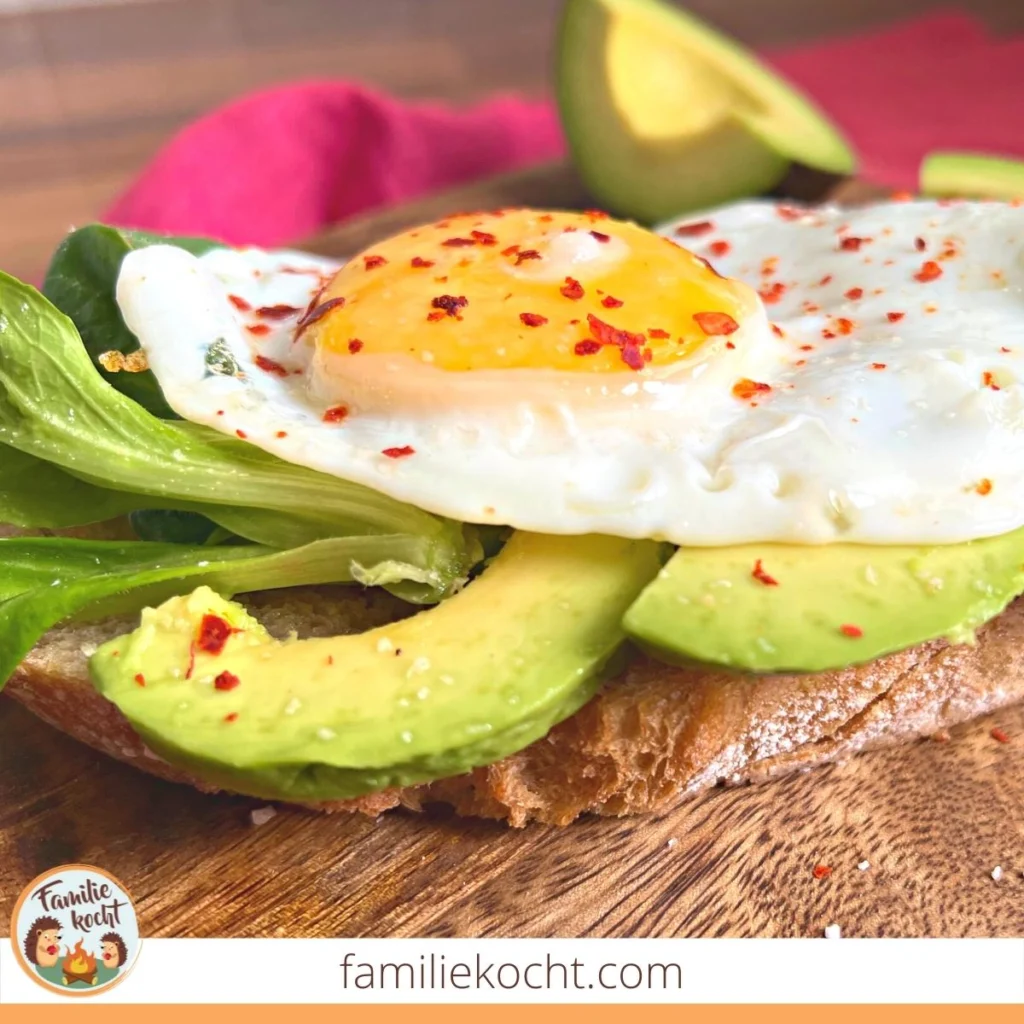 Wenn es dir zu aufwändig ist, die Eier im siedenden Wasser zu kochen, dann sind natürlich Spiegelei oder Rührei gute Alternative. In einer beschichteten Pfanne sind sie schnell gemacht und noch etwas weich passen sie am besten zur cremigen Avocado. Auch gekochte Eier, in Scheiben geschnitten, passen sehr gut auf eine Scheibe knuspriges Vollkornbrot.