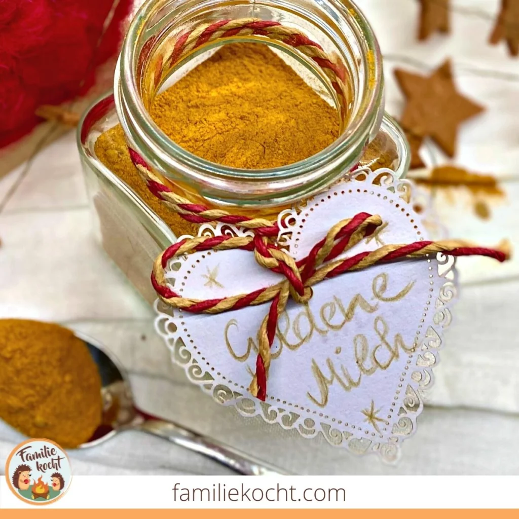 Die Goldene Milch Mischung ist übrigens auch eine tolle Weihnachtsgeschenkidee in einem schönen Glas! Wer freut sich nicht über ein selbstgemachtes Geschenk, was gleichzeitig so gesund und lecker ist.