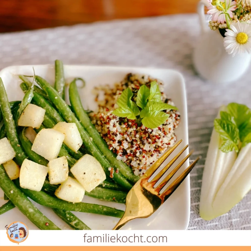 Grüne Bohnen Pfanne ♥ mit Birnen und Quinoa