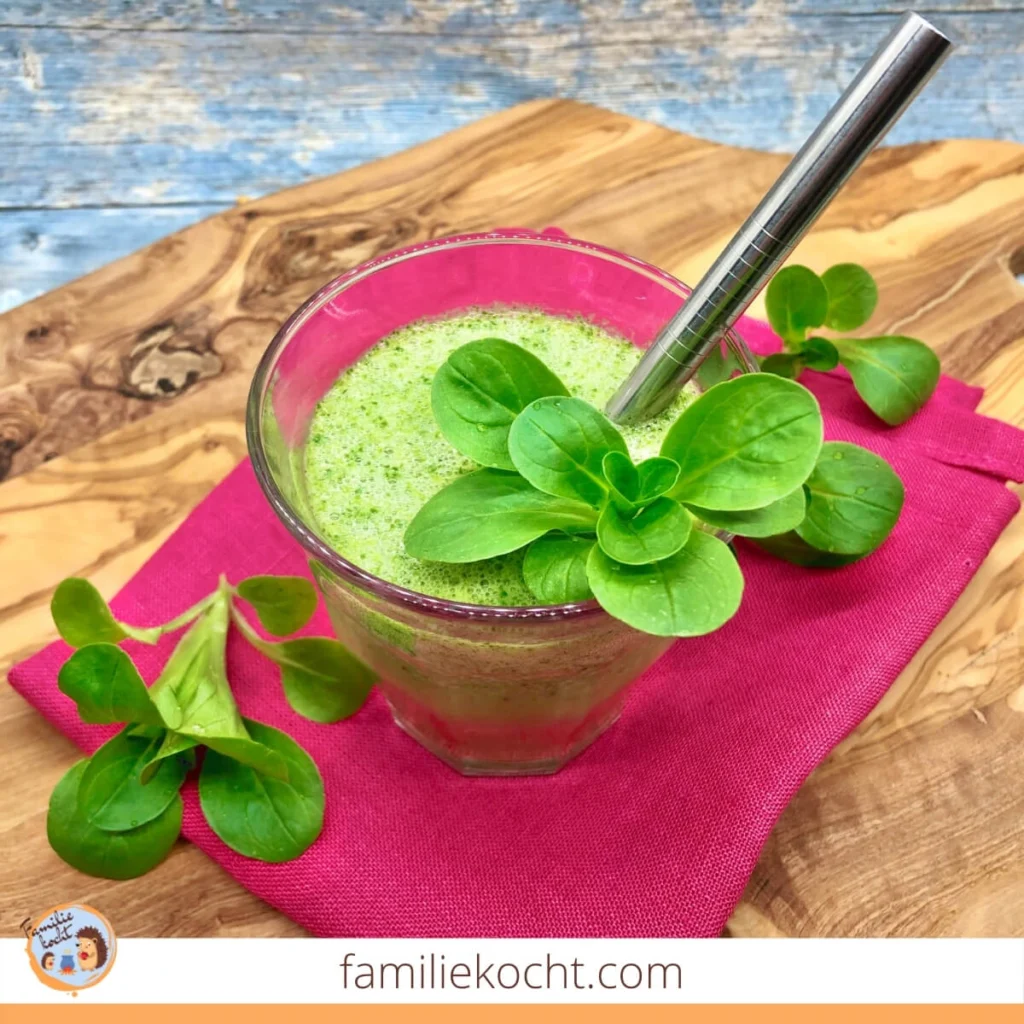 Es enthält besonders viele Antioxidantien, Spurenelemente, Mineralstoffe und auch Bitterstoffe, die super für die Leber sind. Damit kann man unseren grünen Smoothie mit Feldsalat vielleicht sogar Detox Smoothie nennen!