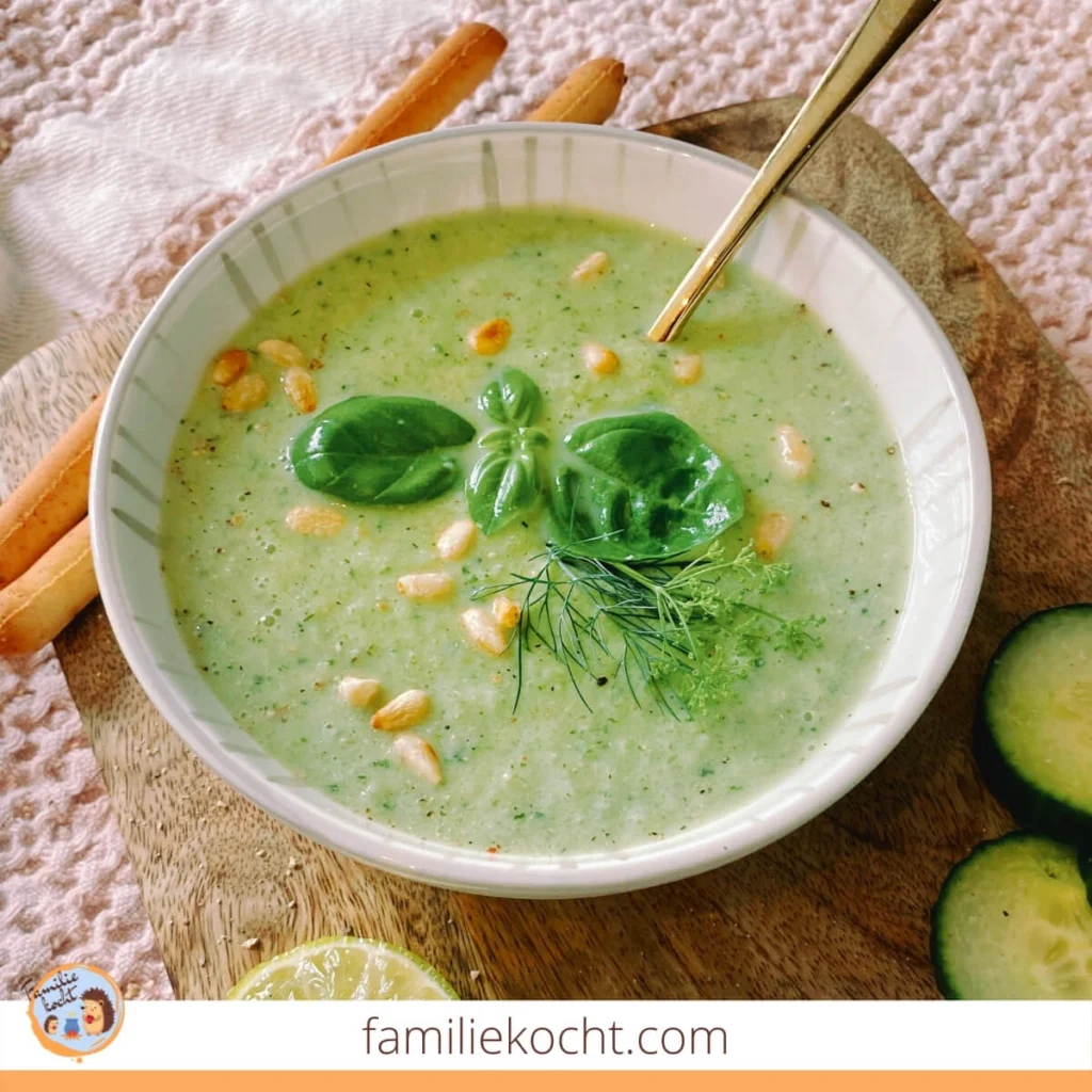 Alle Vitamine und Mineralstoffe, die sonst beim Kochen verloren gehen, bleiben in der kalten Suppe erhalten. Und durch den hohen Wasseranteil hydriert sie zusätzlich. Das Highlight der Gurkensuppe sind definitiv die frischen Kräuter!