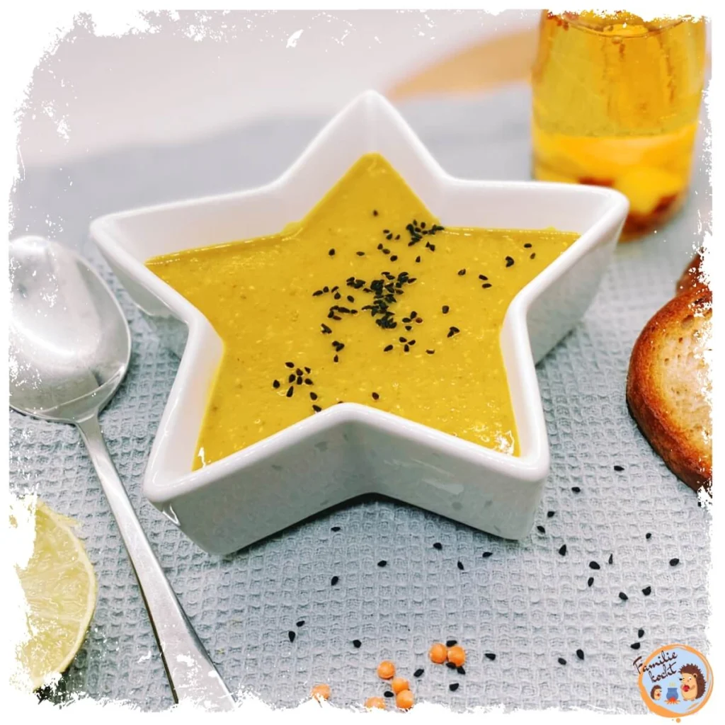 Zum Garnieren verwenden wir nicht so scharfe Chiliflocken und schwarze Zwiebelsamen. Es kann auch für die Erwachsenen mit Salz und Pfeffer etwas nachgewürzt werden, nach unserer Erfahrung ist die Suppe durch die Knoblauch-Senf-Mischung und die indischen Gewürze bereits ziemlich würzig. Wer mag kann noch einen Schuss Kokosmilch vor dem Pürieren hinzugeben.