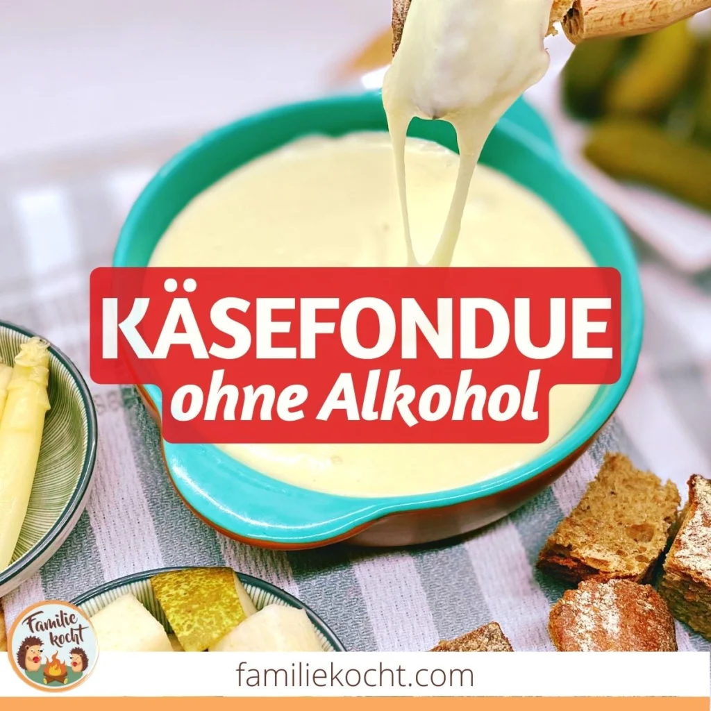 Im Rezept für klassisches Käsefondue gehören trockener Weißwein und Kirschwasser zu den Grundzutaten. Da der Alkohol jedoch beim Erwärmen nicht ganz verfliegt, haben wir hier ein kinderfreundliches, leckeres Käsefondue Rezept ohne Alkohol für eure Familie.