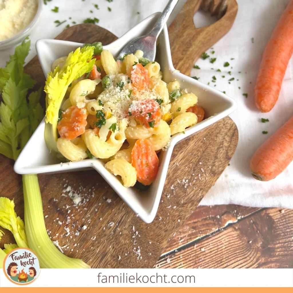 Einfach, schnell und lecker – Käsenudeln mit Mischgemüse sind genau richtig, um ein Lieblingsfamilienessen zu werden! Denn Nudeln, Möhren und cremige Käsesoße mag einfach jeder. Je nachdem, welches Mischgemüse ihr nehmt, sind auch Erbsen, Mais oder Blumenkohl dabei – alles milde Gemüsesorten, die mit etwas Sahne verfeinert, ein absoluter Kinderhit sind!