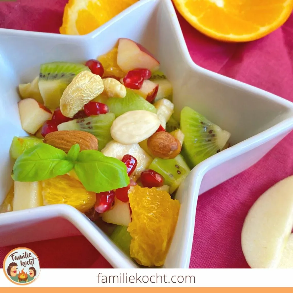 Dann bringt ein klassischer Obstsalat mit Nüssen gesunde Abwechslung ins Haus – und das Schnippeln kann ja auch ganz meditativ sein. Mit einem bunten Obstsalat werdet ihr eure Kinder auf jeden Fall begeistern!
