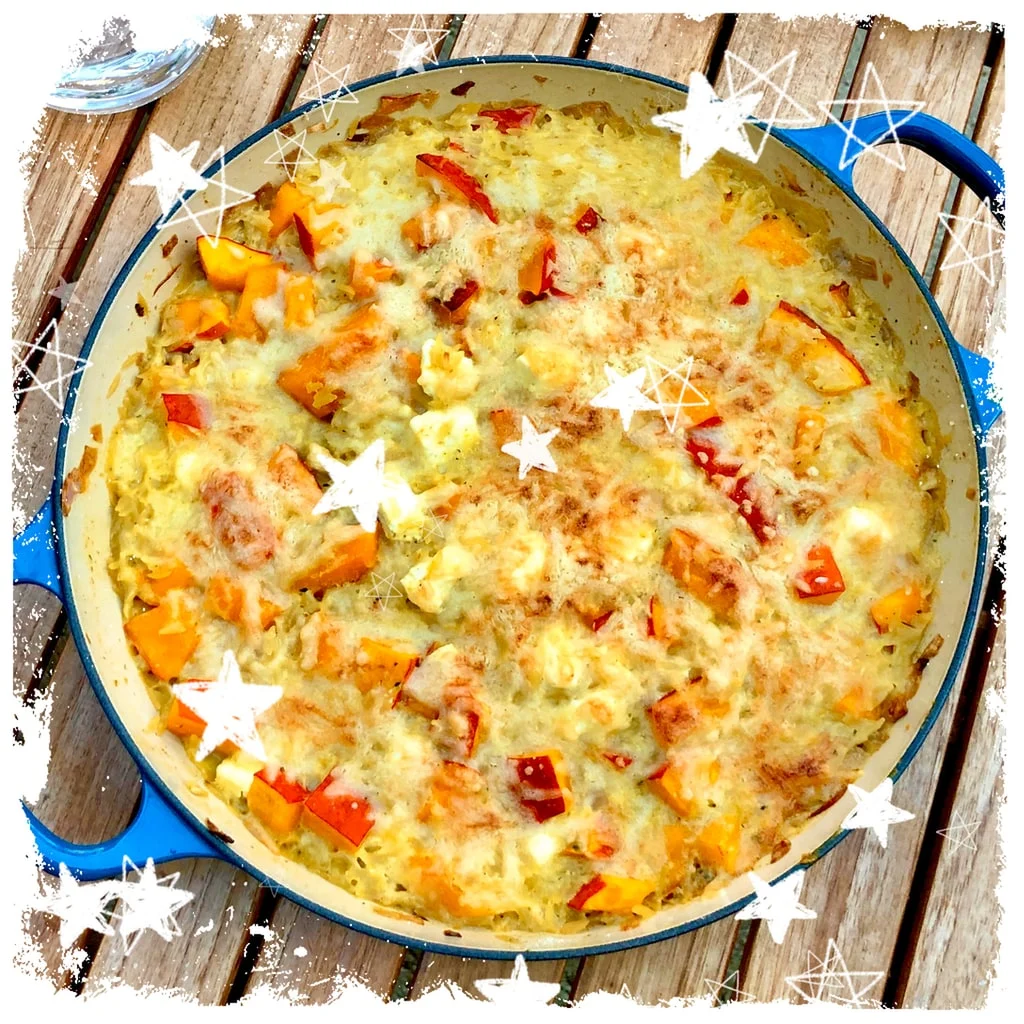 Für alle Kürbis- und Herbstfreunde: heute gibt es wärmenden, weichen Kürbis-Nudel-Auflauf mit Mozzarella und schöner Käsekruste. Dieses Rezept schmeckt allen!