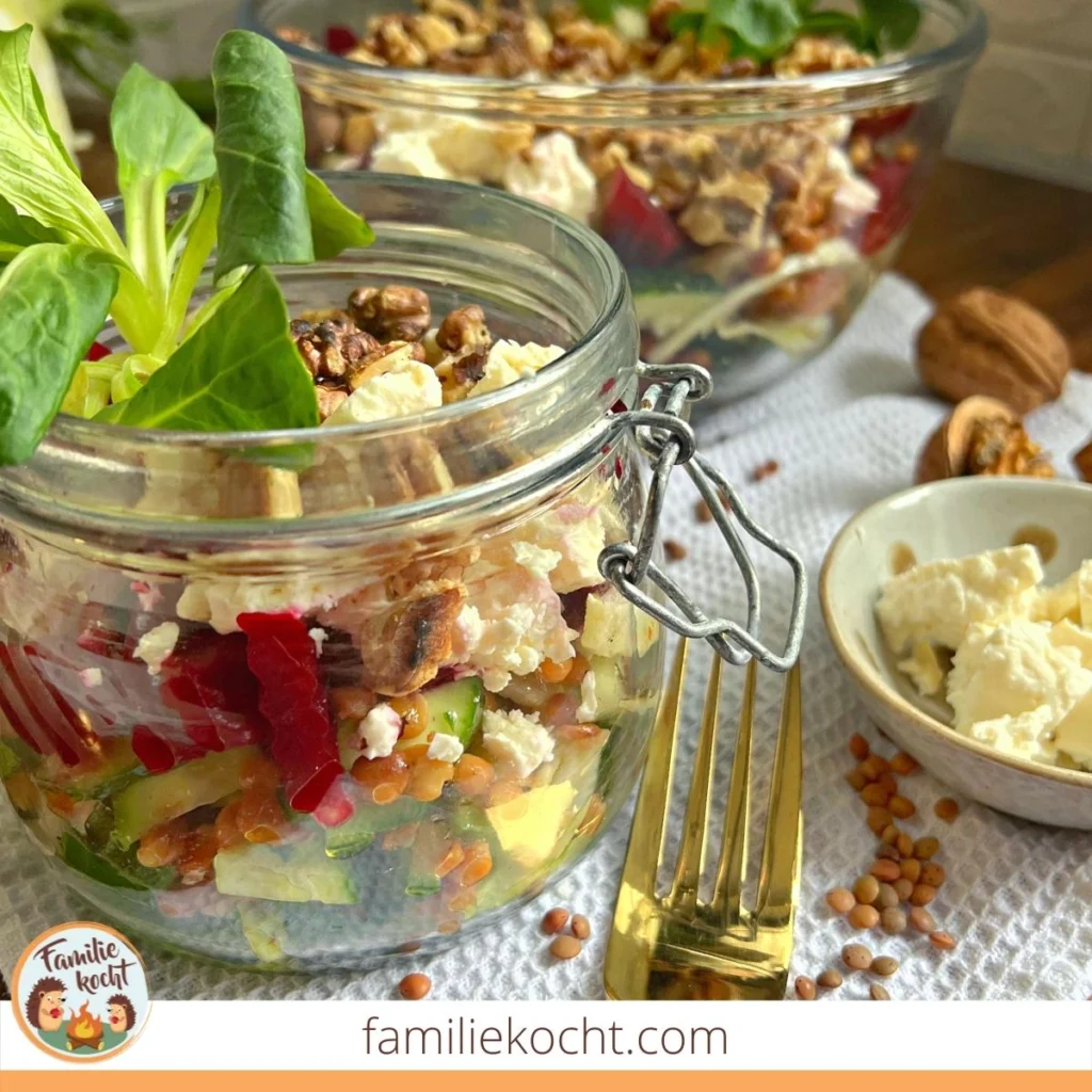 Schichtsalat im Glas ♥ mit Linsen und Nüssen – perfekt zum Vorbereiten