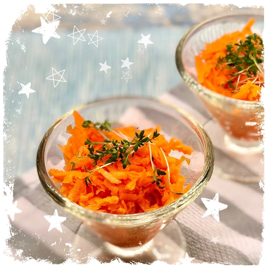 Am liebsten mögen unsere Kinder aber diese schnelle Karotten Rohkost, denn sie schmeckt mild und ist eine leckere Abwechslung auf dem Tisch. Der Möhrensalat ist in wenigen Minuten fertig, richtig gesund und das perfekte Rezept für Zwischendurch oder wenn es am Abend schnell gehen soll.