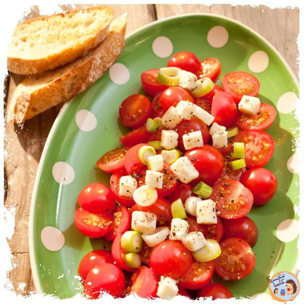 Tomaten Mozzarella Salat mit Frühlingszwiebeln