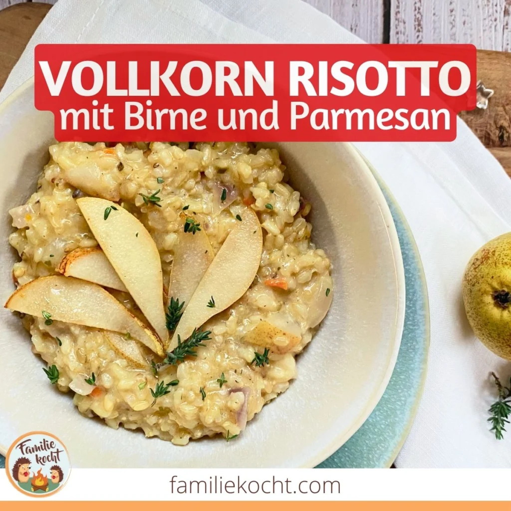 Das Ergebnis ist ein köstliches Vollkorn-Risotto, das durch die Süße der Birne und die Würze des Parmesans eine harmonische Balance schafft, die unseren Kindern (und uns 😉 richtig gut schmeckt.