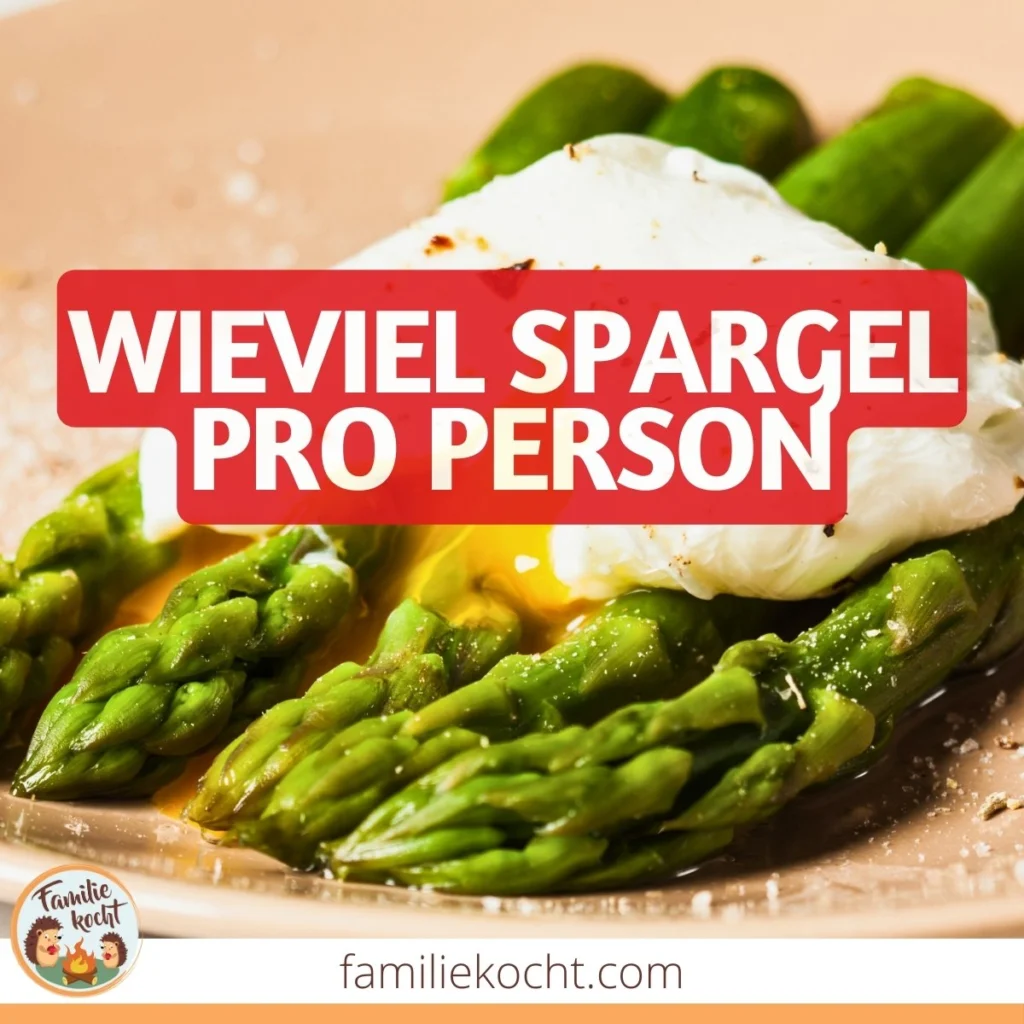 Wird Spargel als Vorspeise serviert, solltest du für eine Person zirka 300 Gramm einkaufen. Beim Hauptgang sind die Portionen größer, daher solltest du mit 500 Gramm pro Person rechnen.